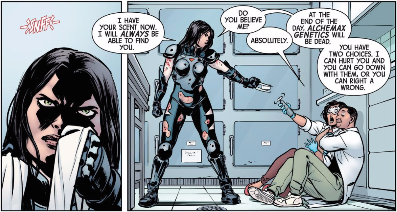 I have no idea if Kimura had any trouble finding and tracking Laura (did I mention I’m new to this character?), but there’s no doubt that she can now that she holds Bellona under her sway. Then again, Kimura seems to have more interest in Bellona’s nanites than her skills, so how this all comes to bear on Laura could be totally different. Who knows? Maybe long-time X-23 fans have a better idea, but for now, I’m happy to just find out what happens next month.