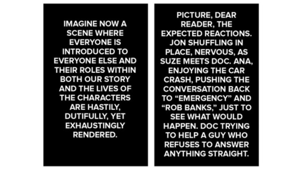Last issue of Injection, I made my thesis about Injection being a critique of art not pushing itself enough. And what happens this issue? We learn that Noble has been punished for daring to suggest that the Golden Age of Television is actually worth watching. Injection, once again, dares art to push even further, push itself to perfection. Though once again Steven Moffat has already prepared a counterpoint, with Vivek’s big scene of working everything out in his chair looking like something straight out of Sherlock.