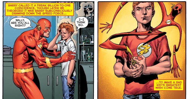 The real question for me is: why is Wally in the Kid Flash uniform? Like, he recounts Barry’s death and return, as well as his own ascension to the role of the Flash, so shouldn’t he be dressed as the Flash? Maybe he was de-aged like everybody else, and the Speed Force simply preserved his memories, but still, wouldn’t he continue to dress like the Flash?