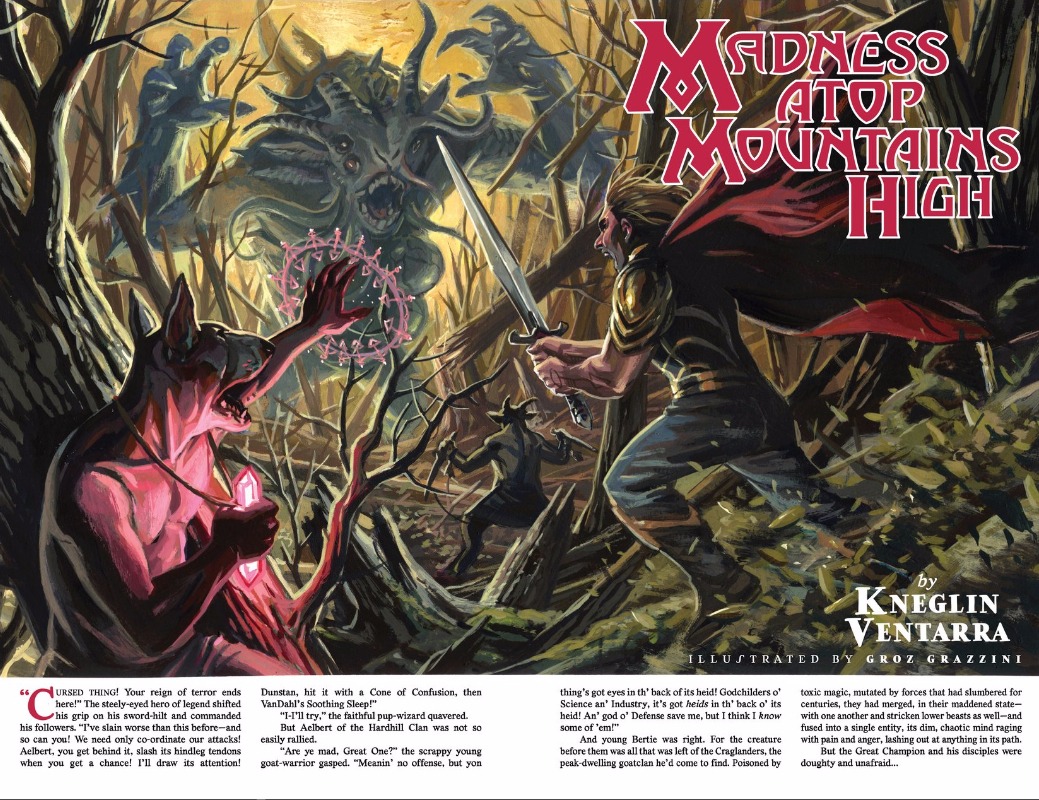 It seems significant that, in a bit of an unusual move for The Autumnlands, Busiek and Dewey open on this spread instead of the other. I think we’re supposed to understand the reality of our heroes’ situation before jumping into the fantasy presented within the works of “Kneglin Ventarra” and “Groz Grazzini,” but that kind of reality check isn’t something most of The Autumnlands’ characters have the luxury of.