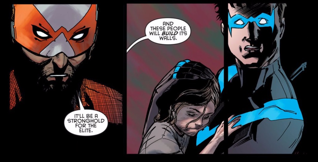 In essence, a reader’s reception of Nightwing 2 boils down to their feelings for Dick’s new frenemy/teacher Raptor. Raptor has been hired on behalf of the Parliament of Owls to retrain Nightwing to be a badder “bad guy.” How do I feel about Raptor? Ehhh I’m not loving him to be honest. Last issue his whole thing was using his fancy claw Suyolak to find “what ails” people. Granted we get a lot more exposure to him, but his “freestyle rap battle” and marketing/branding approach is just…odd. With his discussions of brand extensions and dark vs light, I just don’t think he’s telling Dick anything he hasn’t heard before; at least from what I believe Dick to be.