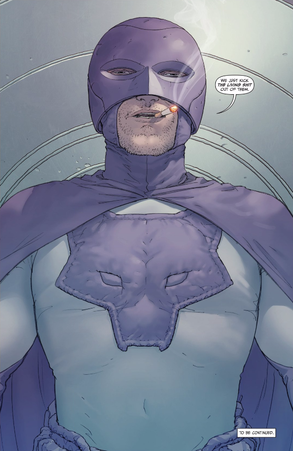 Obviously, the way to make those obstacles meaningful is to tie them to a human scale — it’s not about the physically impossible, but the emotionally difficult. In that way, the real feat of this issue is forcing a reluctant George back into action, leveraging his relationship with Hutch (and Jason) against his bitter disillusionment. Sure, his delayed reaction is just as trope-y as anything — George says as much when he eventually arrives at the super-villain hideout — but I’ll be damned if it isn’t effective. Even more effective, though, is George’s boneheaded solution to a problem he can’t fight his way out of: fight harder.