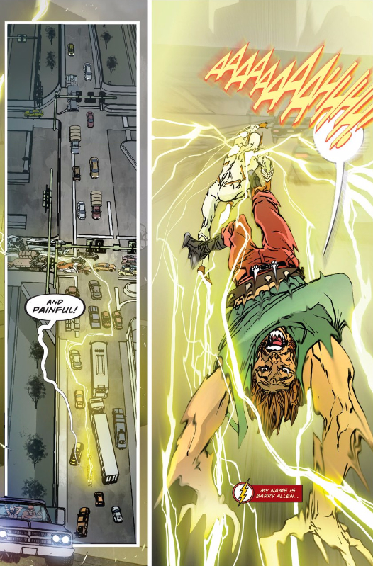 Seriously — the hand-drawn warping effect as Parks is dragged at superspeed is masterful alone, and reaches even grander peaks when combined with the computerized effects. There are moments throughout this issue where Di Giandomenico’s art can occasionally feel a tad too busy, but he always sells the hell outta the speedster’s abilities, and when it comes to The Flash, that may be the most vital skill of all.