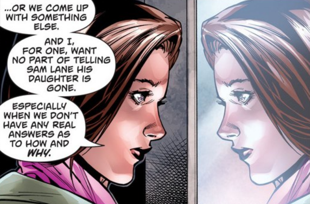 Okay, except you do want a part in telling Sam Lane his daughter is gone! Really! Because the alternative being cooked up here is you taking over a dead woman’s identity and then interacting with her loved ones like everything’s normal. Gross!