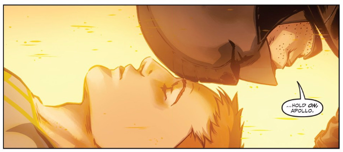 That’s really what Midnighter and Apollo 3 does best: what it may lack in action it absolutely makes up for in heart. Even if he keeps up his tough-guy exterior most of the time, Midnighter is surprisingly vulnerable throughout this issue. His goodbye to Tony reveals that he’s afraid he might not return from his trip to Hell, which is far from Midnighter’s signature confidence. And then there’s this gem of a panel: