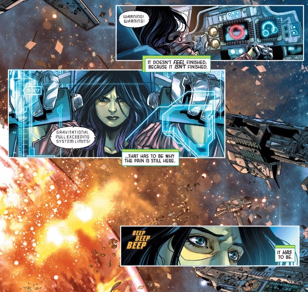 Honestly, I was still disappointed by Thanos 2. Lemire tries to go with a traditional Nebula (unlike Perlman who decided to rewrite Nebula’s entire character to fit her blockbuster movie), yet makes really counter intuitive choices. If Nebula is a space pirate, why make a big point of her making a choice to not have a crew? Isn’t part of the point of having a space pirate character the fact that she will have a pirate ship full of pirates? It actually leads to a poor introduction of her to the plot, as her little space smash and grab really doesn’t feel indicative of who Nebula should be.