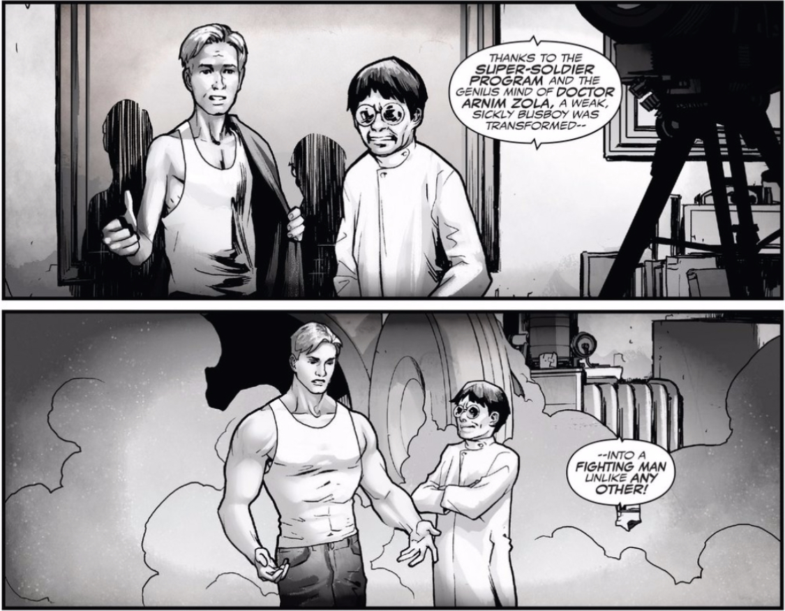 I don’t know, Spencer, how did this issue land for you? I’ve been so enamored of the political and moral themes of this series that I kind of regret needing to focus on these more comic book-y metaphysical concepts. I have a lot of faith in this creative team, but the thought that more than just Steve’s allegiance has been altered suggests a fully-formed alternate reality, rather than just a surprise secret origin. Does that excite you, or do you find it as daunting as I do?