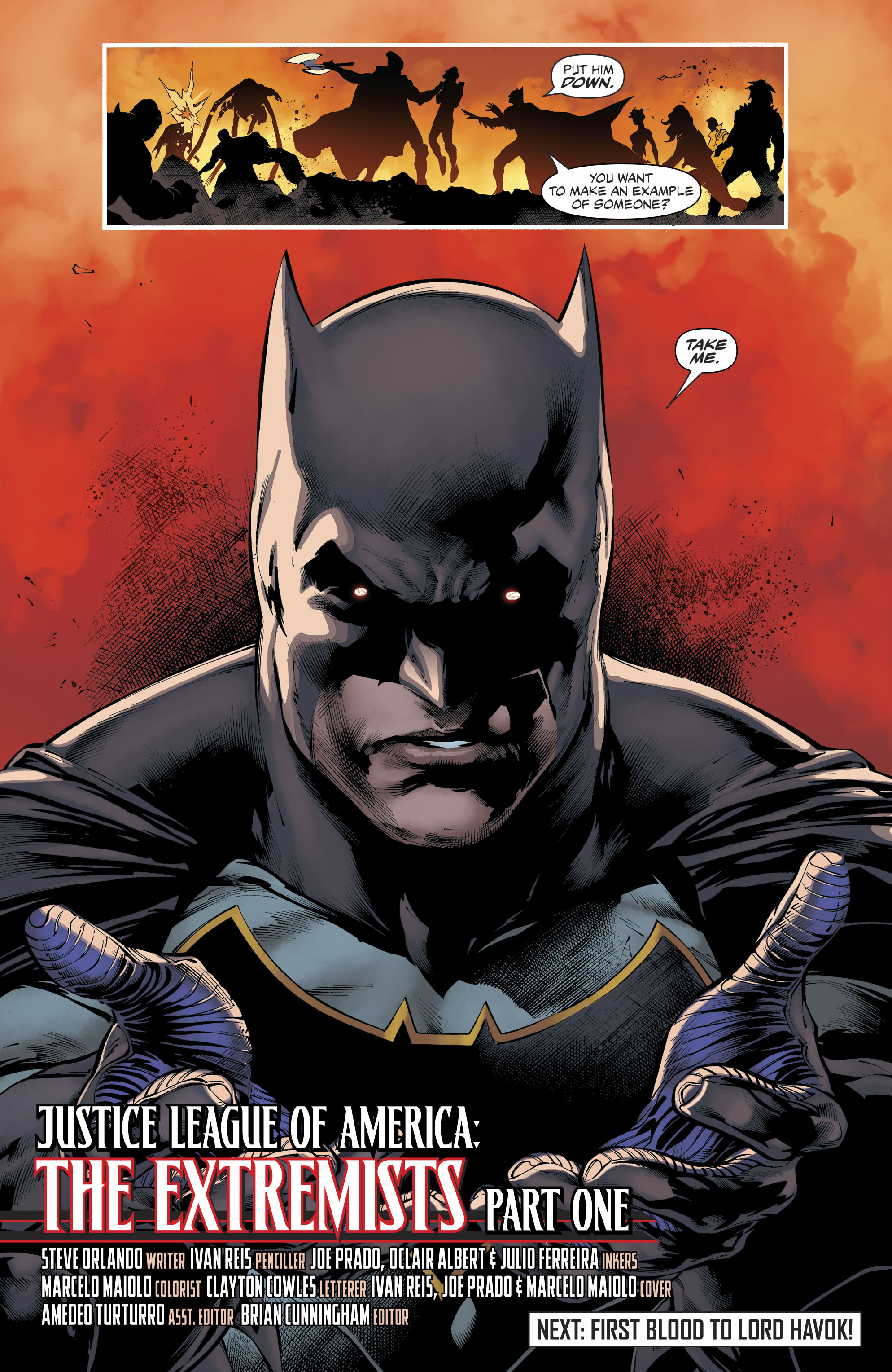 I’m being a Scrooge here with my critiques of a first chapter being “too expository” but the way these characters talk to one another feels unnatural and takes me out of the story. On the surface it’s a pretty by-the-numbers plot: team assembles, not prepared but fights villain, leader falls on his sword for the team. Batman handing himself over felt ham-fisted and unnecessary.