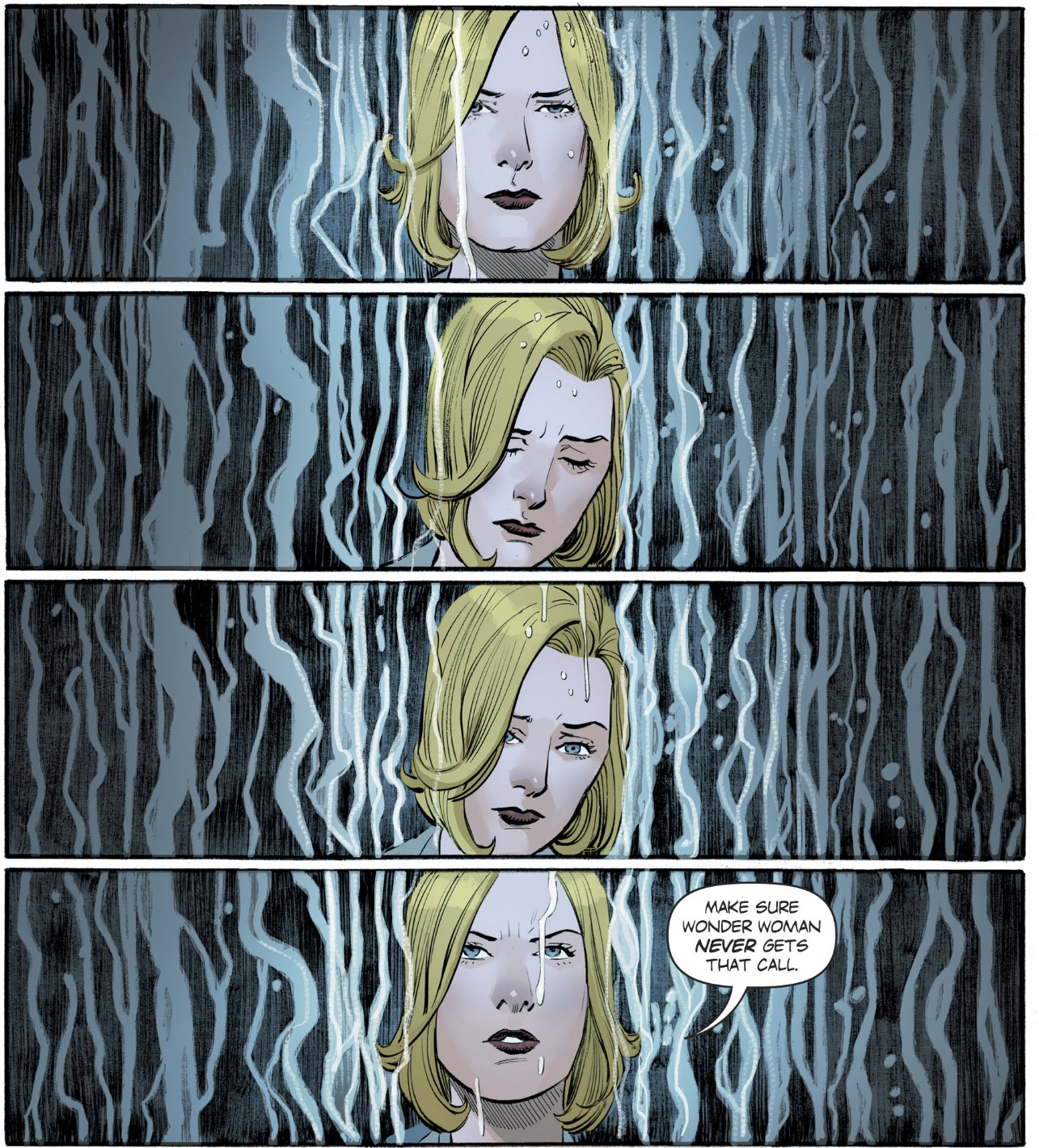But while Cale is ruthless in her pursuit of Wonder Woman, Rucka and artist Bilquis Evely reveal her as a complex character. She knows what she’s doing is hurting other people, and she feels remorse for it, but she’s forced to do anything she can to reclaim her daughter from the clutches of Deimos and Phobos (notably the only males in the issue). The things Veronica Cale does in the name of her daughter are terrible. Cale is unquestionably a bad person. But she is also a complex and tragic figure, and that complexity allows readers to feel empathy for her. That humanization makes for powerful storytelling.