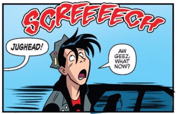 Well, sure he can, and maybe we’ll all learn something along the way. Because that’s how these kind of comics work, right? The characters always play to their types, and Jughead’s appeal lays in the fact that he is, essentially, a clown. Like a clown trained in the Gaulier/Lecoq style, the delight of the audience comes at the expense of the character, and the deeper the clown finds themselves in “the predicament,” the higher the stakes rise and the more desperately the clown must try to dig themselves out. Here’s how this issue handles that phase of the process:
