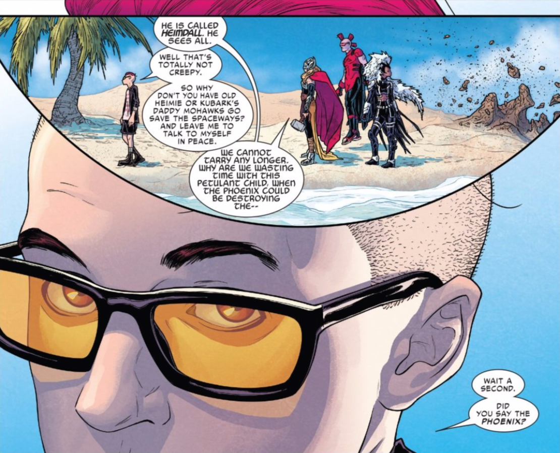 Er, “villain” might be the wrong word for the Phoenix, which acts more as a force of nature than a sentient being, but that’s totally fine, since this issue treats it more like an idea than a physical entity. That starts from the very first scene, which even undermines its own reveal of the yet-unseen Phoenix, forcing Quentin Quire to double back to even catch that it was mentioned.