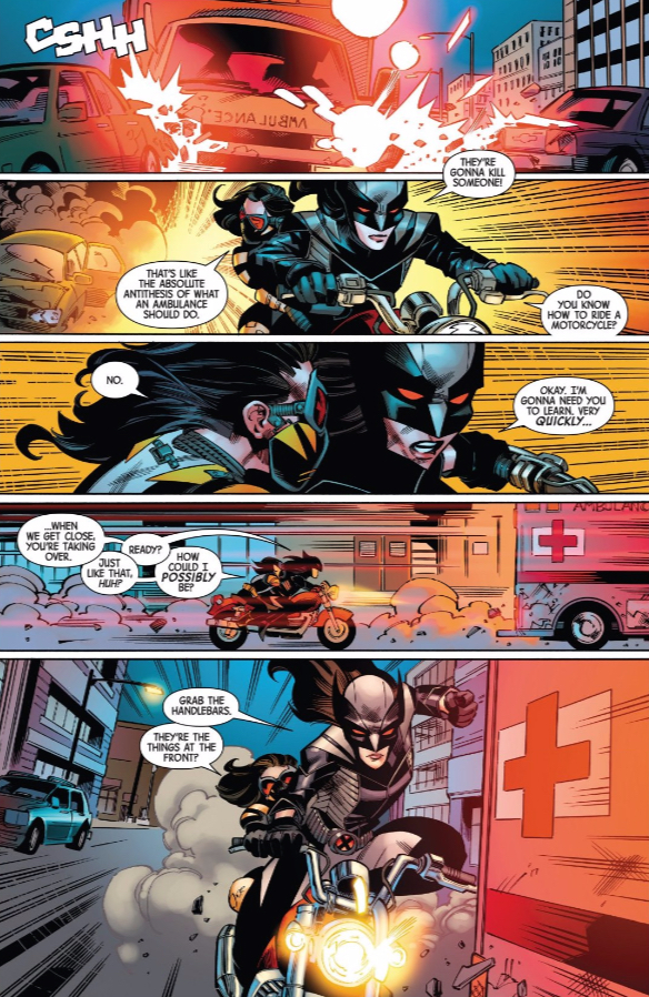 Also, considering Kate’s history has given her two of the most distinctive cars that comics characters has ever had, did anyone find it was weird to have her drive around a car that is specifically not her car, when it isn’t either her car from Fraction’s Hawkeye or her current one in her own book?
