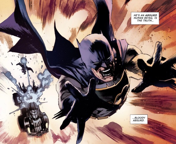 On the flipside of my Snyder factoid argument, I quite enjoyed the explanation behind Bruce’s painting/shield. This was an example of classic Bruce Wayne and Scott Snyder working hand-in-hand: both have an overconfidence and over-preparedness about them.