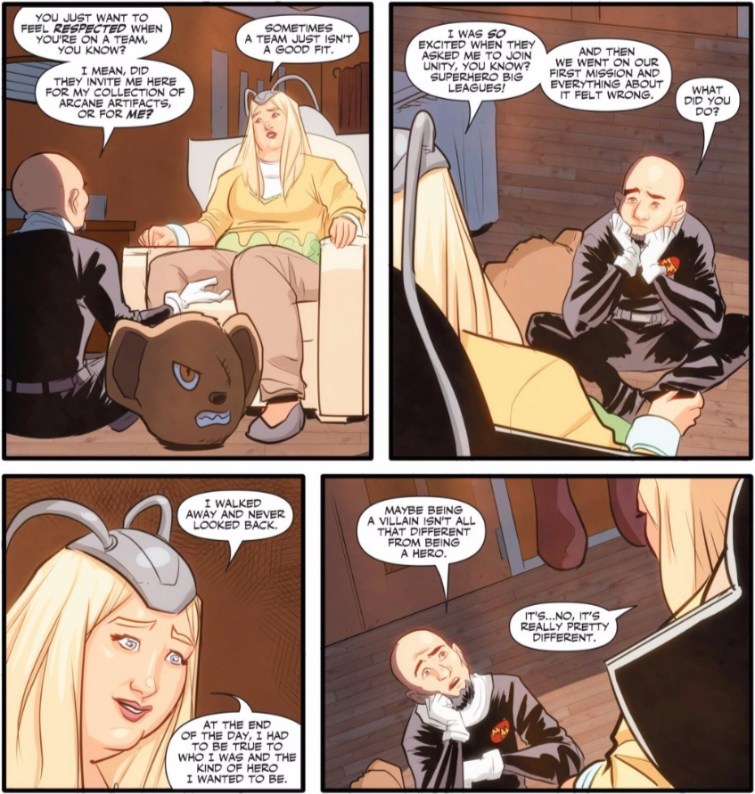 The instability of the Faithless’ evil alliance isn’t the only thing that primes their mission for failure. Indeed, one of the things that dooms them from the start of the issue is the very fact that they are acting, well, like villains. Soon after celebrating the capture of the Faith, the Faithless begin to argue about what exactly to do to her.