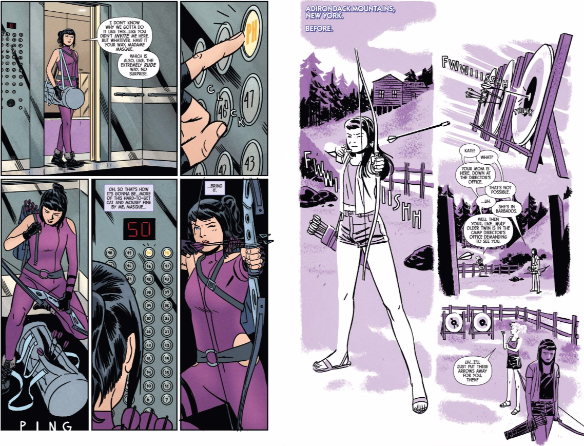 I’d say that childhood flashbacks are certainly a key part of Hawkeye storytelling, and the effect that family has on who we are today. But I think talking about troubled childhoods specifically is a bastardisation of what Kate’s childhood actually was. The only writer who backs your take is Lemire, whose work is contradicted both by every writer of Kate before him and Thompson now.