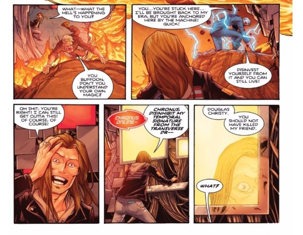 As for the glimpse of the historical exploits of The Knights of Kelodia, Drew has got me beat on the references. I do like the idea of the knights being a part of “the first comic” though. That feels like a perfect ending for a mythic tale of time travel written by the talented — if not self-important — Max Landis.