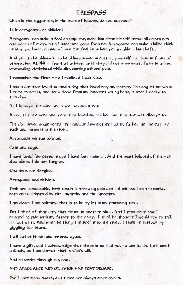 This obviously leaves us with much speculation about who or what this person is. Here’s where credit really has to be given to Simone. She is a patient writer and never reveals too much in this issue. It really isn’t until the moment pictured above that it becomes clear this series is dealing with supernatural elements. That Simone keeps this mysterious figure shrouded in mystery is to the issue and series’ benefit. It creates a mystery that piques my interest and encourages our reading more into what’s happening here. While I’m intrigued by the idea of a trickster god toying with the lives of mortals, I think that prophecy at the end of the issue hints at deeper things. After all, a writer doesn’t include short essay on arrogance (specifically about the arrogance of men) for no reason. Whatever the case may be, the world Simone is crafting here is shrouded in mystery and that has me hooked.