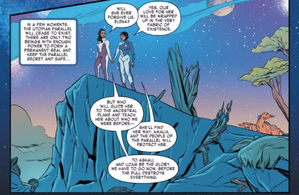 This issue is such an ode to mentorship that it’s actually surprising when America eventually rejects Madrimar. Her anger is understandable to an extent, but I have to wonder if she’s actually upset about Madrimar’s manipulations, or simply at the fact that she needed so much help at all. No matter how much America’s grown, she still has plenty to learn, and I can only hope she continues to find the guidance she needs to become the best America Chavez she can be.