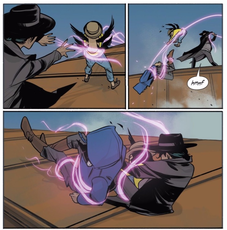 • thanks to Comixology I accidentally opened this issue directly to that cliffhanger, so my mind immediately went racing. Based off of Hazel’s conversation with Petrichor last month, I thought that perhaps Hazel was experimenting with different genders or something along that line.