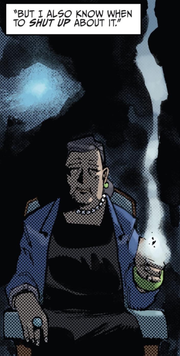 Allor is also smart to downplay some of the game’s more well-known elements. The film turned even the dinner party into a game of wits in order to introduce all the murder weapons before the murder actually happened. Allor and Daniel aren’t shying away from candlestick and rope references, but they’re letting their importance to the narrative pop up more organically, which I appreciate. The downside is that the dinner itself also feels less important as a result — Mr. Boddy, by the issue’s own admission, is a cipher, making a gathering of such disparate, antagonistic characters feel strange. Upton the butler even fast forwards the narrative past most of the dinner to get the good stuff.