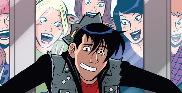 For Jughead Jones, a horde of doe-eyed girls with hearts in their eyes is a living nightmare. Flynn and Waid highlight this idea with their four page riff on Jughead fighting zombies. With pitch perfect art from Charm, they tell a zombie story that both emphasizes Jughead’s fear and maintains the humor that grounds it in Jug’s perspective.