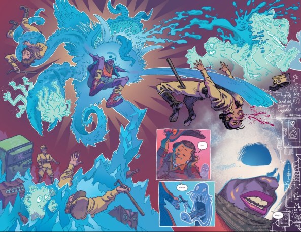 This issue carries the character far by giving us a deep insight on the mindset of the the Cantik group, who — despite their underground, dissenting vibe — still don’t really support the Shapers, while also giving the audience some great touchstones on the socio-politics of the world, hinted at but now realized with action. Artist Jonas Goonface draws the heck out of this title, showing us the highs of performance art with a receptive crowd, then the fallout and hell of a hate crime spectacularly, with incredible attention to detail without sacrificing the aesthetic: