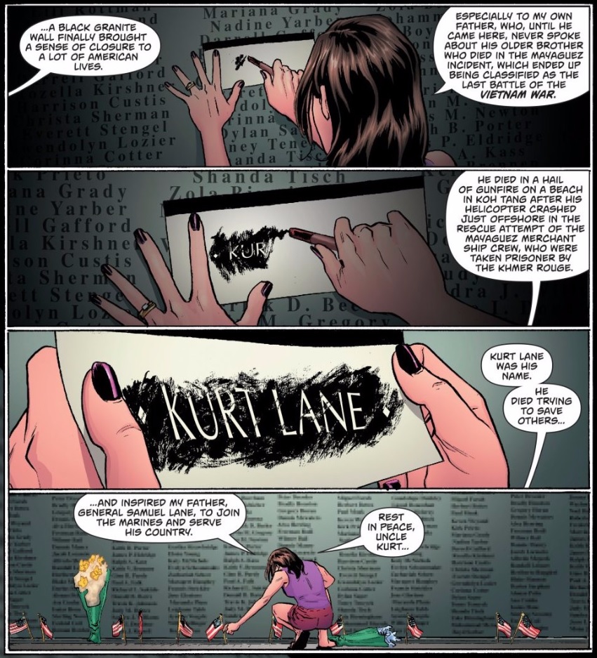 Okay, I certainly don’t love General Sam Lane, but it’s still interesting to see how he initially took up his crusade in order to follow in his older brother’s footsteps. This actually seems to be one of the more common themes of the issue: the sacrifices made in wartime are horrific and heartbreaking, but can inspire others to serve a higher calling themselves.