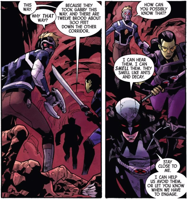 As action movie quips go, Ripley’s command to the Alien Queen is far from inventive, but I’ll be damned if it isn’t one of the most iconic. Indeed, on repeat viewings, the the tension of Ripley’s descent into the Alien nest is more or less subsumed by my anticipation of that scene. Indeed, once you know the showdown between Ripley and the Queen is inevitable, everything leading up to it feels like unnecessary padding. The Queen exists for the sole purpose of Ripley defeating her, so the movie is really just ticking boxes once she has Newt. In All-New Wolverine 23, Tom Taylor and Leonard Kirk reproduce that setup with uncanny accuracy, teasing us with the promise of Laura facing down the Brood Queen only to snatch that possibility away at the last second.