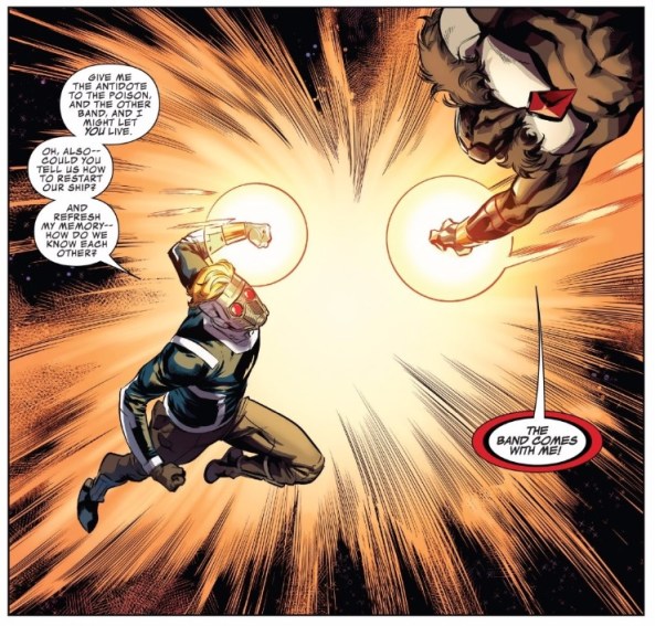 Once Star-Lord gets the cure from Talonar he gives him back his nega-bands — sort of.