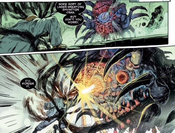 The Kingpin’s description of this monster is pretty spot-on as there’s basically no other way to describe it. It doesn’t seem to be too big a stretch of the imagination to envision Hopeless’ notes to artist Niko Henrichon describing this monster in just the same way the Kingpin did. Something along the lines of “Panel 3 – Kingpin sees sphincter crab walking toward him” sounds about right. What makes this moment fun – aside from the anatomical description of course – is it’s easy to imagine Hopeless giving similar instructions to Henrichon all the time during their collaboration on Doctor Strange.