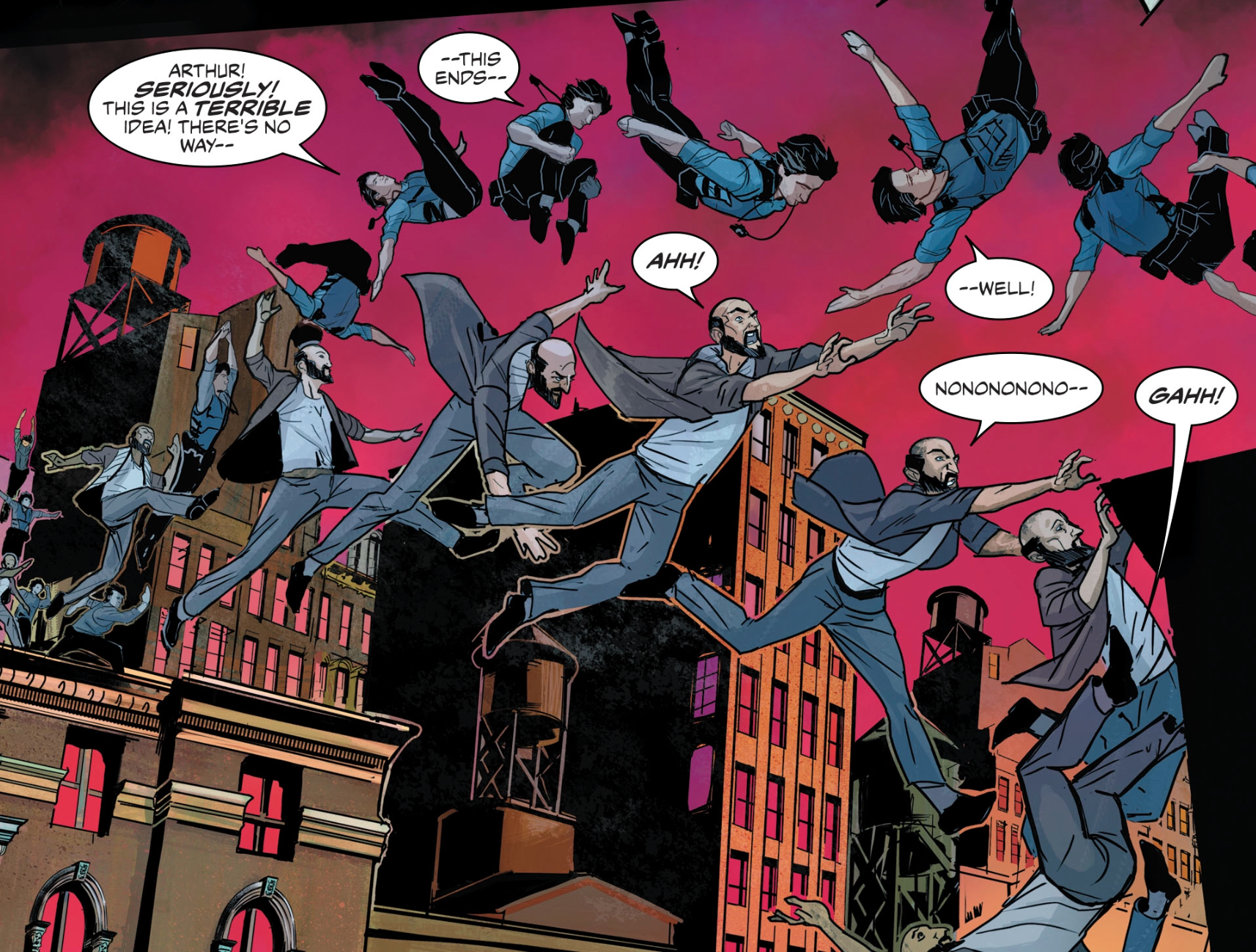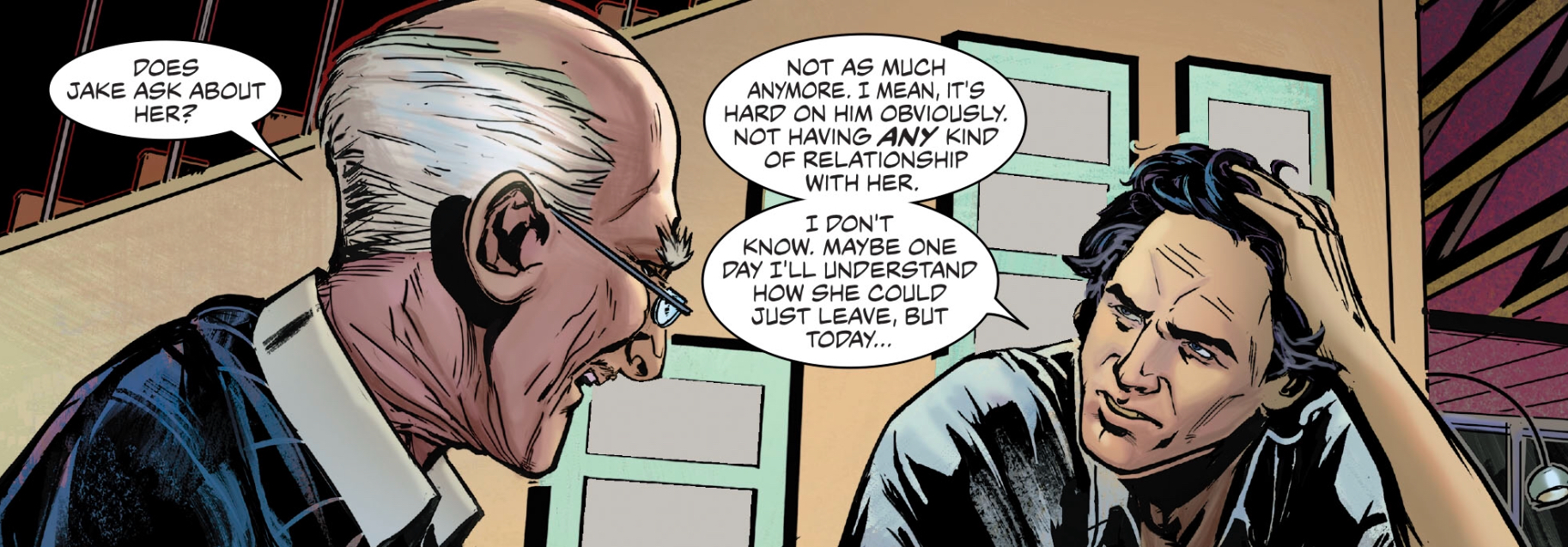 As far as the ominous “she” mentioned throughout the issue as Jake’s biological mother, my gut instinct says “Starfire.” Now, my knowledge of the history between those two characters is a bit muddy thanks to DC’s numerous reboots and retcons, but I’ve always enjoyed the romantic dalliances between two of the fittest heroes in the multiverse. I suppose the fact that she has alien DNA might make it a bit less of a surprise if Jake began to manifest powers, but the only other candidate I can think of is quite a long-shot: Kate Kane, Batwoman. Now, sure, I know Kate is gay, and — from what I’ve read of her solo title thus far — kind of turning evil, but the one thing which points me her way is that her father’s name is Jake (Jacob) Kane, the head of the paramilitary group “The Colonists.” This group thought that Batman was great but didn’t take his caped crusade far enough — something which shares some overlap with Dick’s current task of maintaining a police state. Maybe the mother could be an old flame from his days with Spyral, or a deep cut from a DC series I missed, or even a new character, but those two women were the only two I could consider with the information we have thus far.