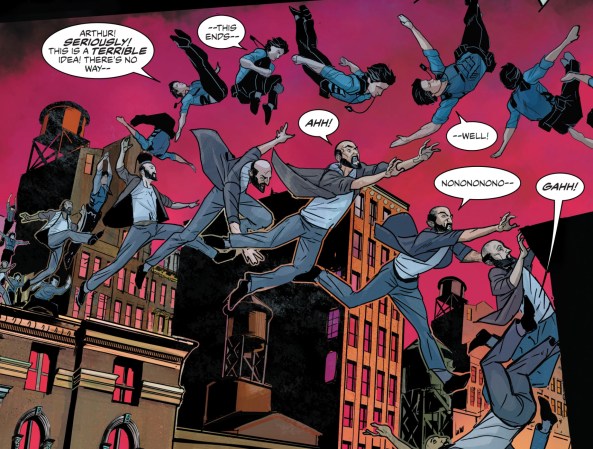 Ryan D: Mark, leave it to you to ask the big questions! I think the “she” of the mother and the inciting event which led to the Metropolis incident must be linked, if only for dramatic purposes. If they are not, there’s only one reason I can think of which could have sparked off such radical action in Dick Grayson: the death of Bruce Wayne. You mentioned it earlier, but I think that Bruce’s absence will go on to play a huge role in the upcoming reveals. While we know that, practically, his death gave Dick the inheritance money necessary to help push much of the legislature through which enabled the new legal status quo on metahumanity, but I think there’s more to glean here than just a pay-day.