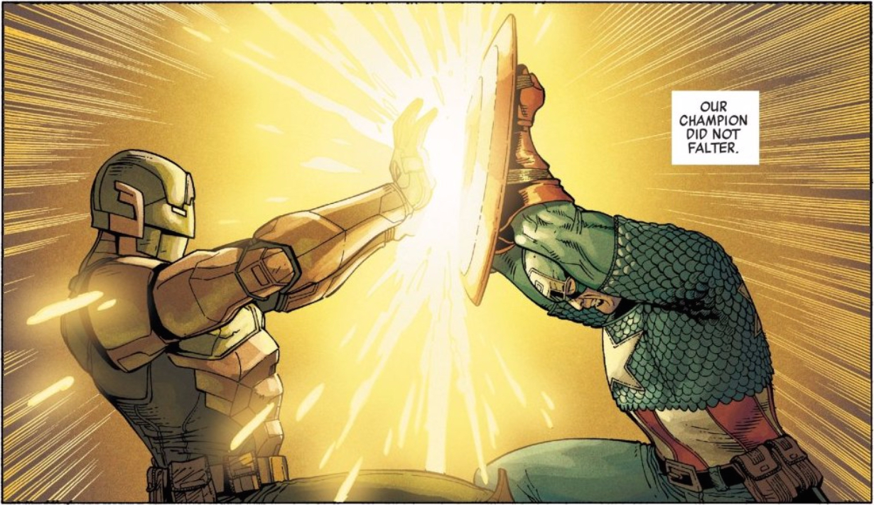 ‘If this journey, one that’s dragged Steve Rogers’ character and Marvel’s own reputation through mud, was one meant to be worth going on, its culmination being the simple message that “Hey, maybe you should stand up and fight back against the bad guys”—a message so explicitly obvious in the realm of superhero comics the fact that it is presented here as a grand statement feels almost disingenuous—rings hollow.’