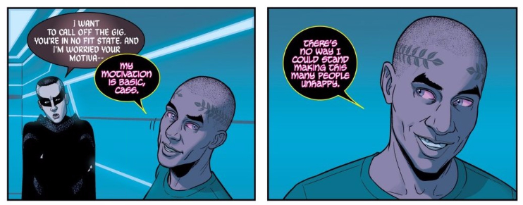 I shouldn’t have been surprised when Woden betrayed Cass and Dio (even though I was) — not only had he been far too cooperative for far too long, but he’d spoken several times of how Dionysus’ hivemind was one of the only miracles he hadn’t learned to reproduce yet. Of course he’d want to take control of it, if only to prove that he could. But what’s his larger goal here? Between being under Ananke’s thumb and working with Cass/Dio, I don’t feel like Woden has ever had a chance to even have a larger scheme beyond his own immediate selfish satisfaction before. Has that changed now? With the power of Dionysus’ massive hivemind he could accomplish almost anything, and that’s a terrifying thought.