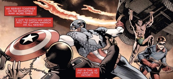 I think there was another way Spencer could have ended it, though. Instead of ending with Steve catching the shield, with Steve in a heroic pose and a letter about how important it is that Steve is Captain America, how about we make it about Sam?