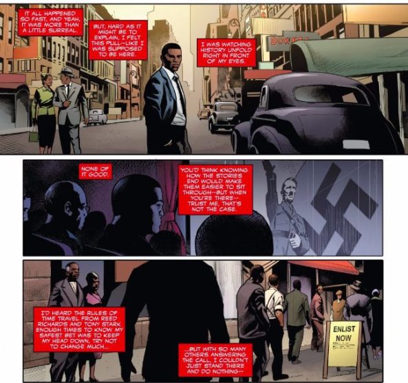 For the man who has always struggled to be the activist, the Captain America he wants to be, he is given a canvas to truly commit. As an activist, he manages to become a meaningful part of the Civil Rights movement, and use his pulpit to advocate for community engagement. And as Captain America, he sets such an example, that Steve Rogers himself feels trapped in his shadow.