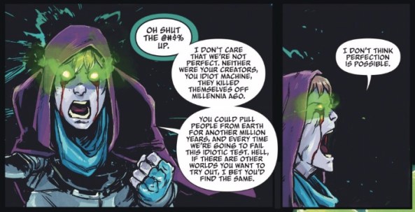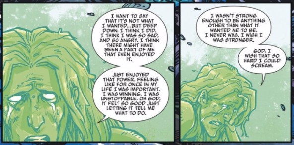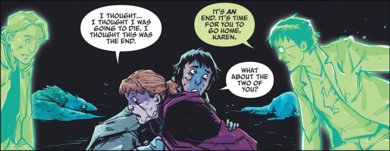 And actually, this moment also highlights one of the key themes of this issue. In a series that has spent so much time talking about deaths having meaning — of dying for something — I find Adrian’s assurance that this is an end to be particularly empowering. That is, Karen’s actions can have meaning even if she doesn’t die for them — that life can have meaning, too. That lesson, along with the one that mistakes are inevitable, makes for a compelling one-two punch, giving the formerly aimless and indecisive Karen the perspective she so desperately needed.