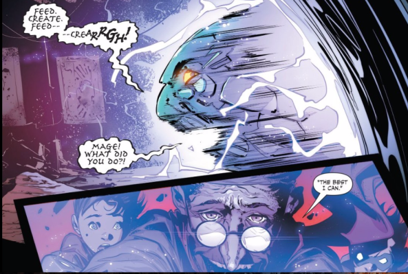 True, Ygarddis is temporarily banished and Kraklow is going to make a bunch of heroes for when he returns. But it feels a bit anticlimactic, as if Tomasi got bored with the story or has a better idea that he wants to explore next issue. If nothing else, I’m glad that Jon is learning to be a hero of inspiration like his old man.