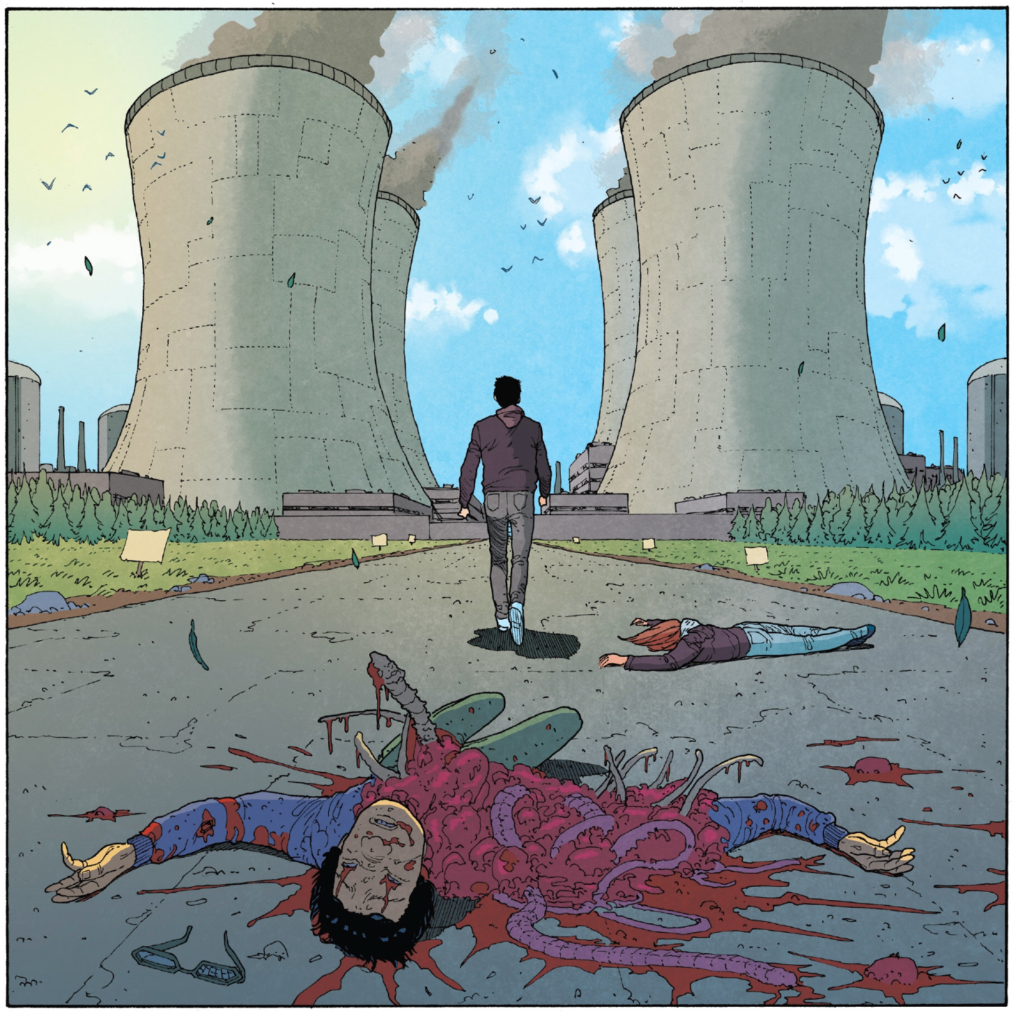 Akio turned Nick into a literal weapon, a super powered bomb driven by rage, but even when Nick proves to be beyond dangerous, Akio still thinks he can control him for his own purposes. But there’s no off switch. Everyone knows you can’t create a monster and then hope to tame it. Nick ends up ripping Akio apart, but even after Akio dies Nick lives on. The issue ends with him heading towards the nuclear power plant, intent on inflicting maximum carnage.