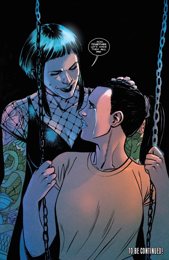 In that way, I think the commentary this issue makes on the internet’s weird way of dehumanizing people is a lot more complicated than it might seem. We might be on the monster’s side for holding Chelsea accountable for her actions — though we’ll hopefully agree that head-eating takes it a bit too far — but the monster’s motives to luxuriate in Kaydon’s misery forces us to question our own. Are our we virtuous for virtue’s sake, or do we get some kind of perverse joy out of feeling like saviors (thus requiring that there be people to save)? Are the monsters better or worse than the people they’re killing, or are they all just part of the same cycle?