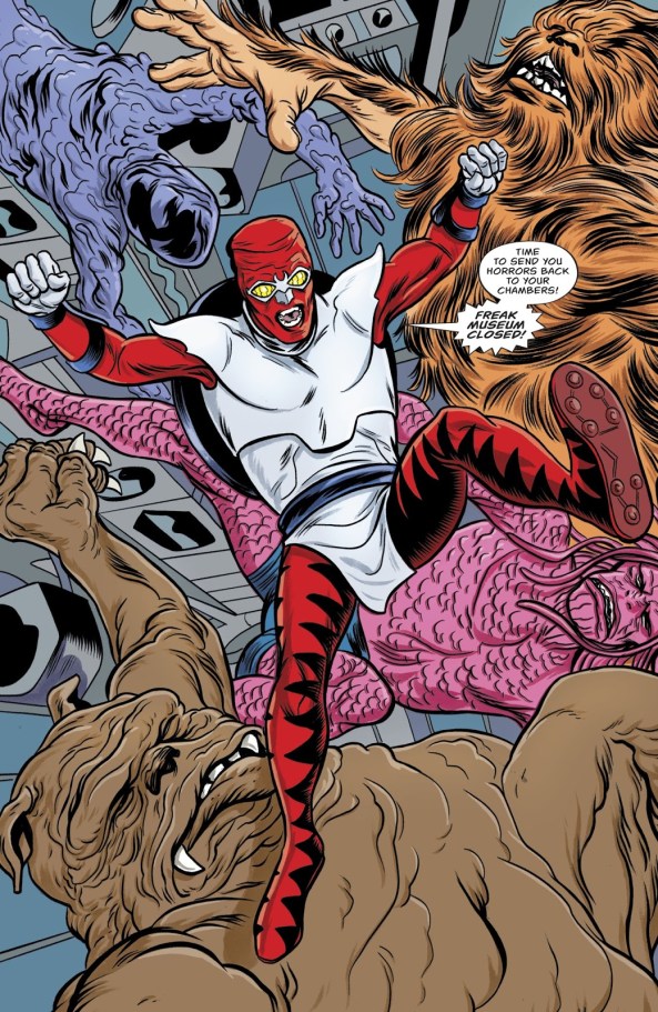 Bug! can be a hard book to dissect at times — Michael’s right that the ongoing plot is almost impossible to parse out — but I can overlook most of this book’s weaknesses simply because it’s so much fun. As a colorful diversion, a grand adventure, and a tribute to one of the most important figures in all of comics, it’s quite a success.