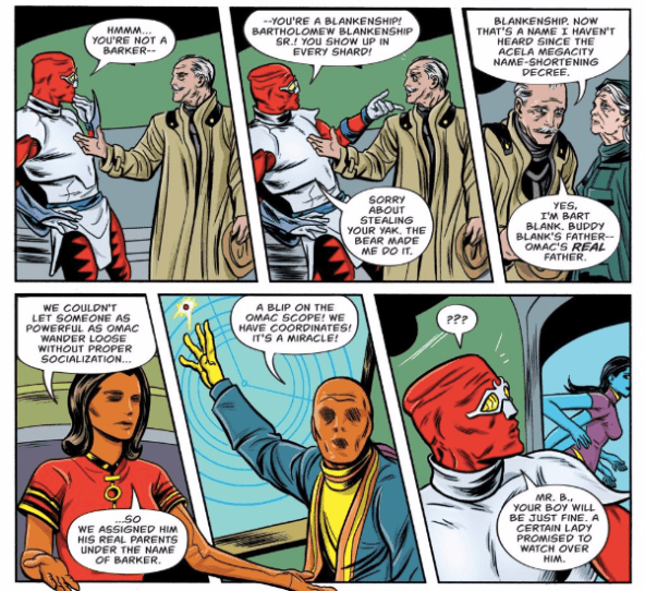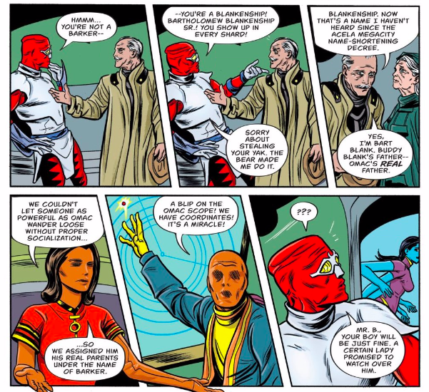 As Michael pointed out, the issue also reinterprets some of Kirby’s OMAC mythology, tying it into several of Kirby’s other DC Creations through characters like Bartholomew Blankenship and ideas like the Brother Box. These are retcons, to be sure, but we can’t say that the Allreds weren’t up-front about what they were doing.