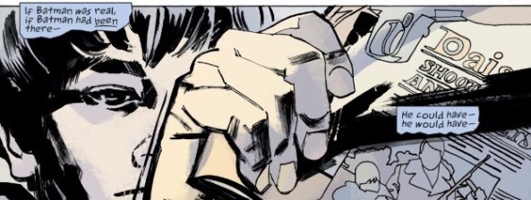 Bruce is smart enough to know that Batman isn’t real, but in a world this unfair, he can’t help but to wish he was anyway.