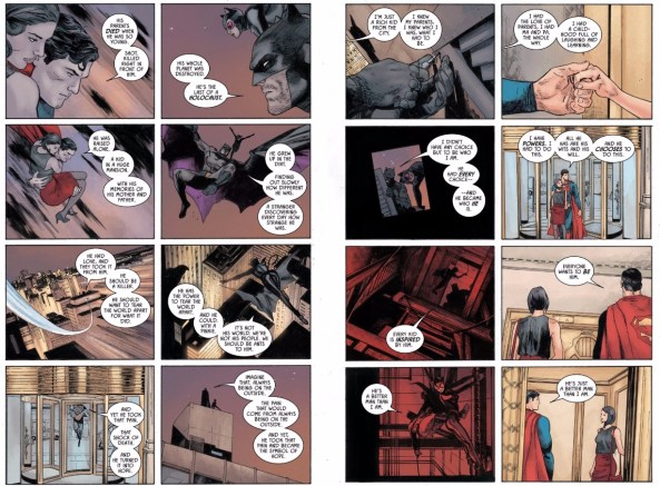 Mark: I’ve been praising a lot of DC titles recently for making their heroes more relatable — bringing them down a bit from the pedestal of Untouchable Super Gods where DC sometimes likes to position them to differentiate from the other guys — but it was a welcome surprise to see this dynamic make its way to Batman and Superman.