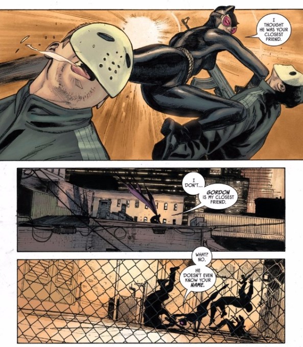 I think you are understating the importance of knowing nods and glances. I mean, Spencer says that ‘can they really be best friends when there’s so much that has to remain hidden between them’ is built on the idea that there is something hidden between them. And those nods and knowing glances are proof that it isn’t the case. The only thing stopping Gordon from knowing Batman’s identity is Gordon. It is a pretty consistent character beat. Whether it is ‘You know, I’m practically blind without my glasses’ in Year One, Bruce revealing himself to Gordon in No Man’s Land only for Gordon to turn away or the line in Hush where Bruce discusses how both Gordon and Perry White are too good at their jobs not to know about Bruce and Clark, or Gordon thanking Dick Grayson for his efforts in the Black Mirror, the idea of Bruce’s identity being a secret other than a well respected boundary is pretty integral to their relationship. I’d even go so far that it is Gordon’s boundary, not Bruce’s. Hell, I’d argue that the existence of such respectfully treated boundary is the sign of a strong relationship.