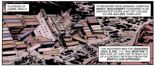 Bruce’s company’s investments are all doing remarkably well, but y’know, it’s partially because their competitors are beset with various tragedies. Bruce writes these incidents off as fortunate for him and for his investors. Because Bruce is so focused on how he can use the money from the resultant profits to help the victims of street crime, he never pauses to consider the victims of these incidents that end up netting him so much cash. And of course, these aren’t really accidents, but intentional actions undertaken by Bruce’s Batman-esque guardian angel. Part of making Bruce feel “safe” is empowering him with the money to radically reshape the lives of victims. Artist John Paul Leon draws these accidents at a safe distance, allowing us Bruce’s privileged perspective as spectator in these incidents, instead of the perpetrator of them.