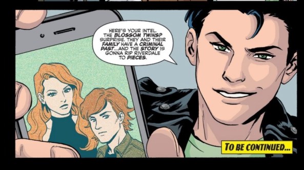 So, I guess that puts me in the same boat as you Ryan: after treating all of these sad sacks as fully formed human beings with contradictory, subtle wants, it does feel pretty abrupt to shift to Reggie exposing the Blossom twins as whateverwhateverwhatever. I almost felt like I was switching from the Archie comics to the Riverdale TV show — even the dramatic shadows of the prologue evoke the campy noire aesthetic of the television series. I should have faith in this creative team not to chase the success of the TV show, but in the weeks between now and the release of issue 28, I guess I’m going to have that faith tested.