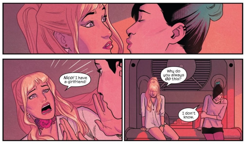 Or not, in Nico’s case. She makes a pass at Karolina who immediately calls it out as acting out a pattern.