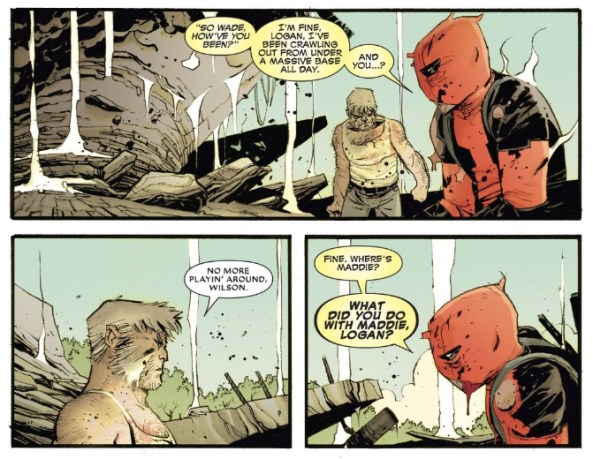 But something funny happens when Logan explains Maddie’s exit, and Henderson and Shalvey explain how Maddie killed her father by accidentally teleporting him into the room. Maddie becomes both as dangerous and lost as both Logan and Wade say she is. Which means neither one of them is able to see past their own emotional baggage to see the whole of the problem. Logan only sees another disastrous future he can try to prevent with a little snikt, and Wade only sees another little girl who needs to be protected.