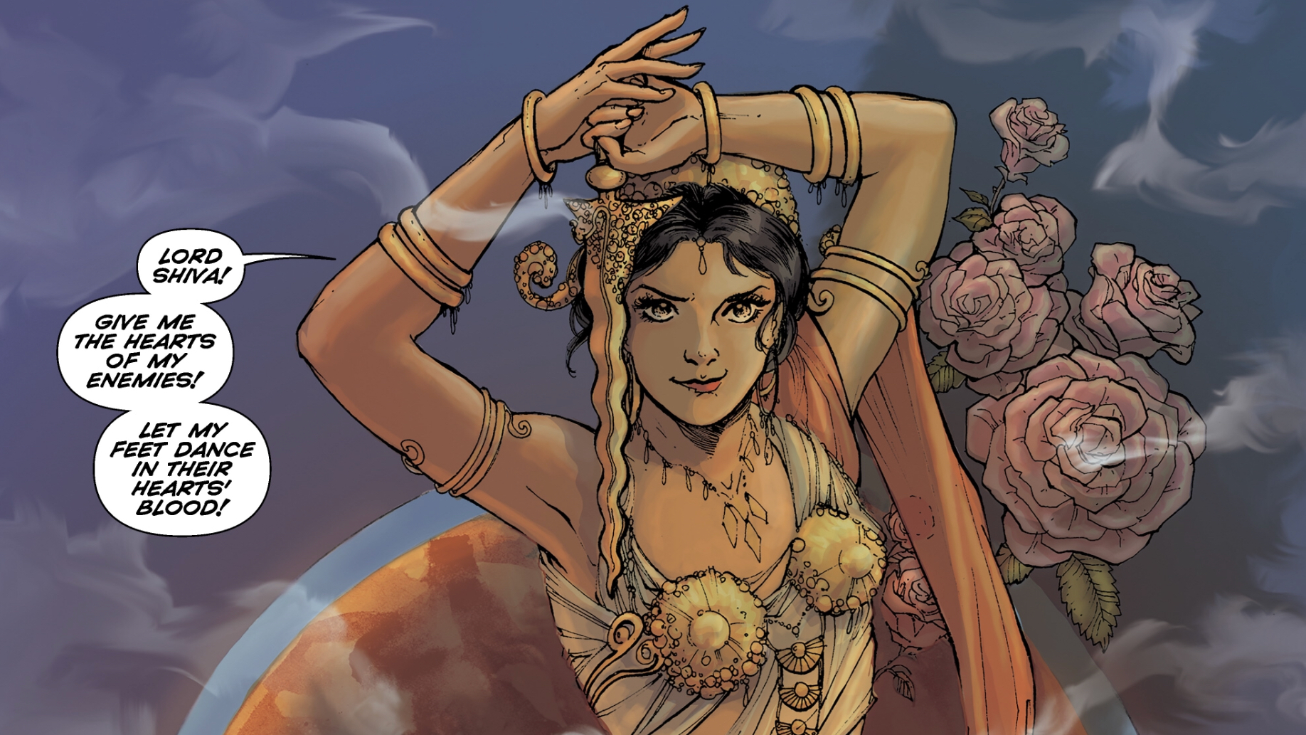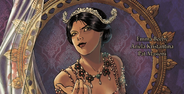 Writer Emma Beeby calls out Harvey Weinstein by name in her author’s note at the end of Mata Hari 1, noting specifically that “now is the perfect moment to tell the story of what happens when women are without power.” Mata Hari is the stage name of Margaretha Zelle-MacLeod, a Dutch performer and accused spy who was put to death in the early 1900’s. We first meet Margaretha in a French prison for prostitutes at the end of her life; she’s putting her final affairs in order moments before her execution. What follows is a series of quick vignettes from different points in her life, all trying to help explain how she arrived at this end — her time on trial for espionage, as a model, a courtesan, a child in Holland — all passionately rendered by artist Ariela Kristantina and colorist Pat Masioni. Kristantina’s art does a lot of work in keeping the reader engaged through the disparate moments; it’s detailed and thoughtfully laid out in a way that allows multiple timelines to exist on a single page without descending into cacophony.